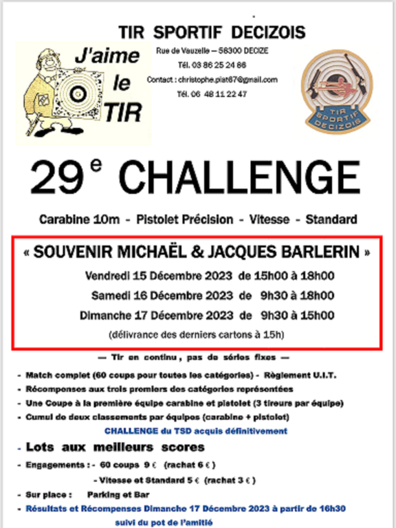Notre challenge aura lieu les 15-16 et 17 décembre 2023.